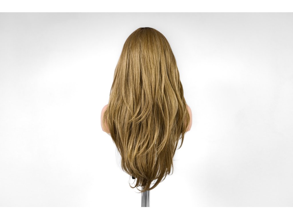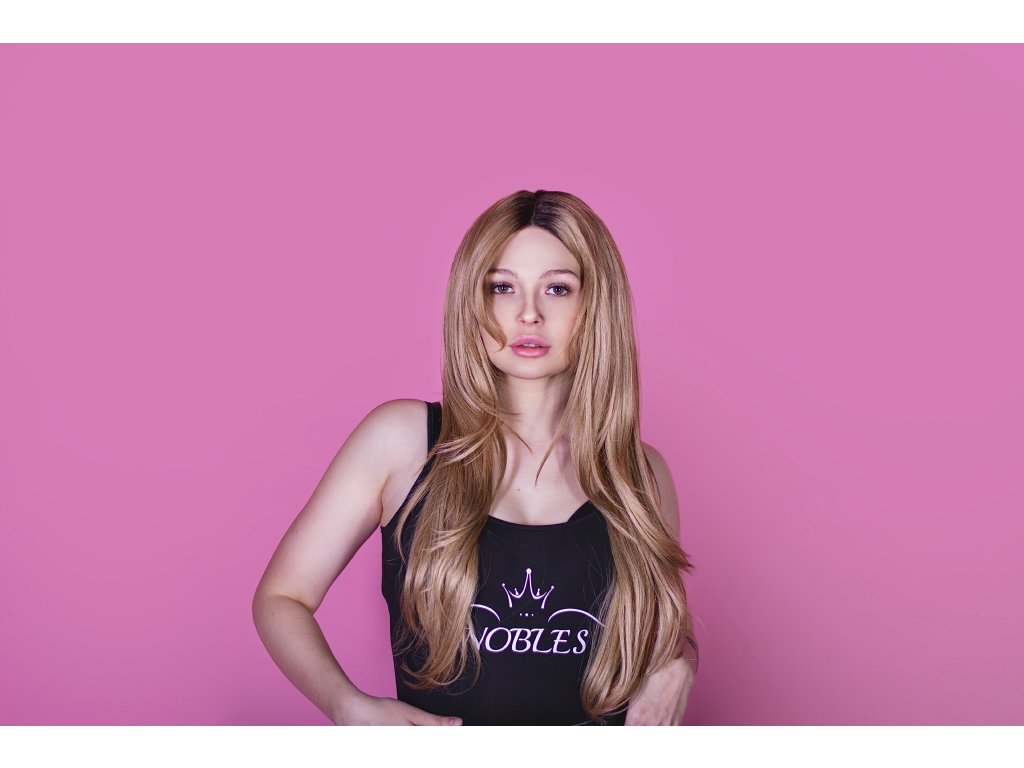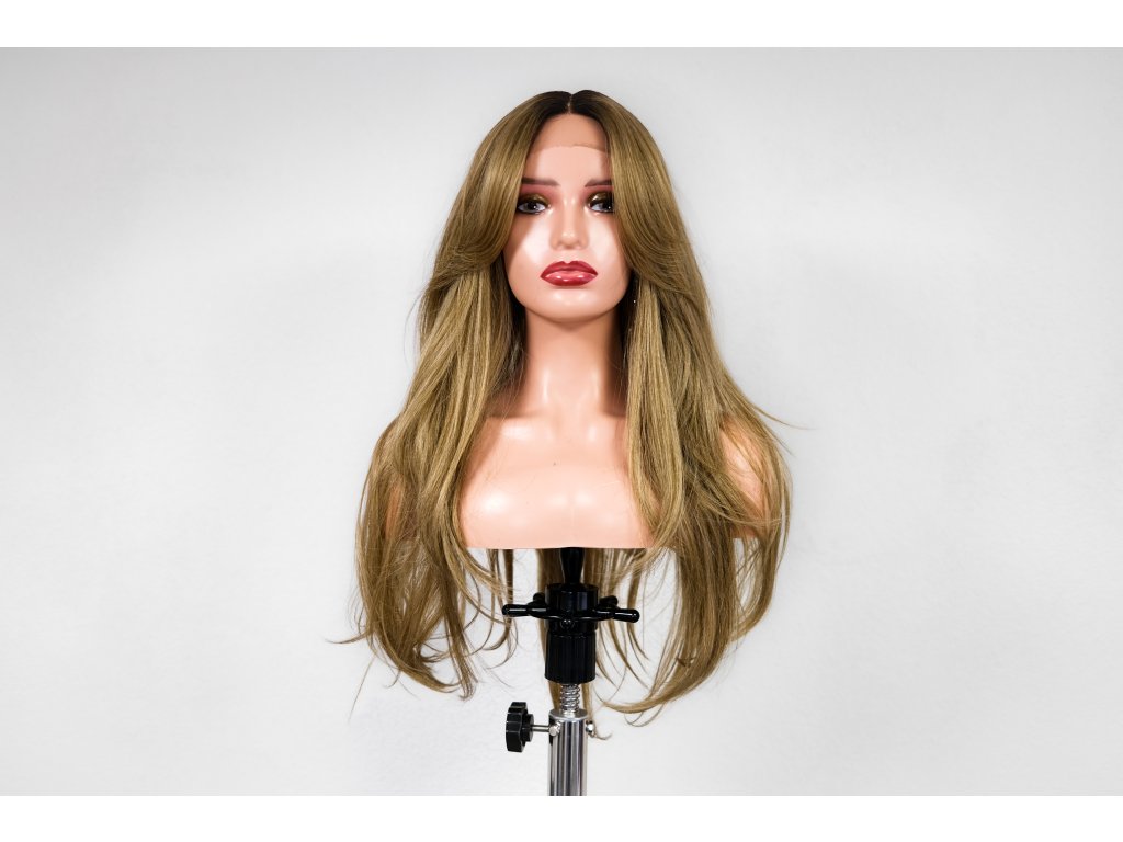 Špinavá blond luxusní rovná paruka z umělého vlákna Japanese synthetic fibers prémiové kvality. Dlouhá paruka. (LACE FRONT - T-část)