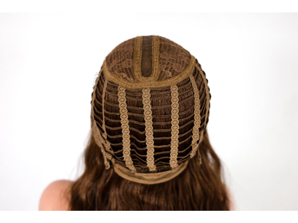 Nastavíte si ji jednoduše pomocí řemínku a háčku, který je umístěnz vnitřní strany paruky.