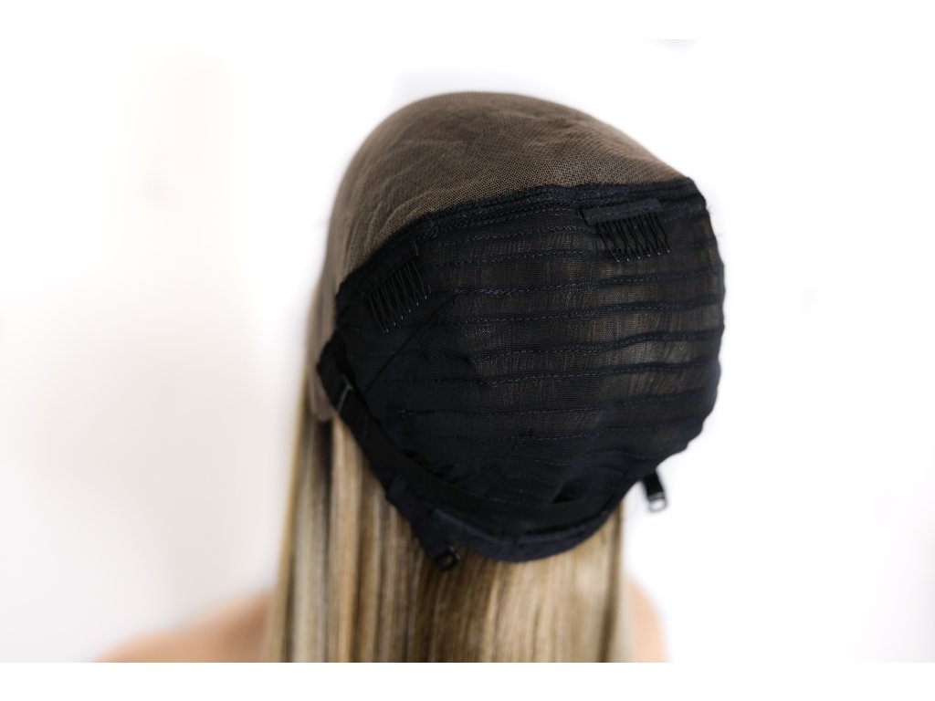 Nastavíte si ji jednoduše pomocí řemínku a háčku, který je umístěnz vnitřní strany paruky.
