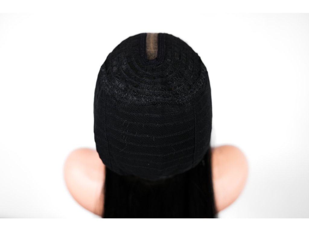 Nastavíte si ji jednoduše pomocí řemínku a háčku, který je umístěnz vnitřní strany paruky.